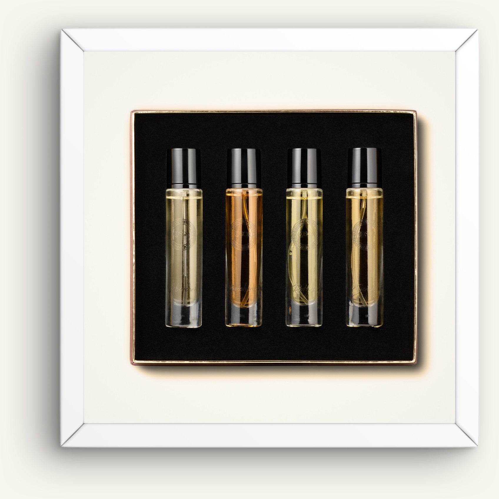 Experience the essence of four iconic cities with our exclusive Cities Perfume Discovery Set. This luxurious collection features four 15ML bottles, each capturing the unique character and charm of: