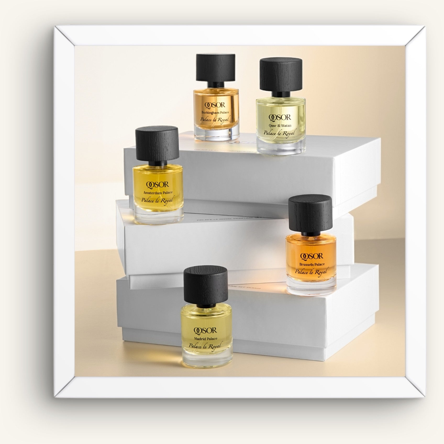 This set includes three 30ML perfumes, handpicked by you from our luxurious selection: Brussels Palace, Madrid Palace, Qasr Al Watan, Buckingham Palace, Amsterdam Palace.